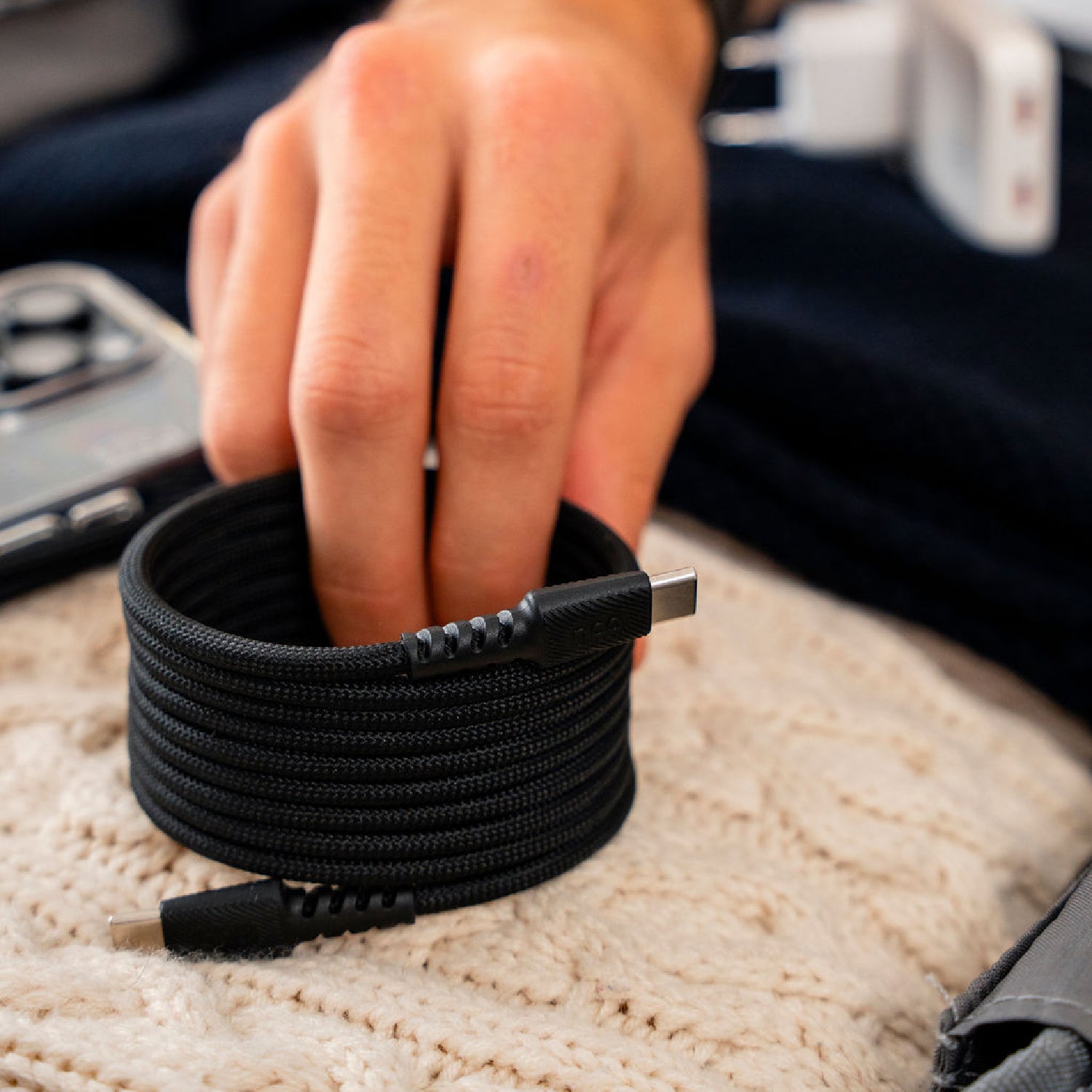 PowerForce de 2 m combina carga rápida de hasta 240W, tecnología magnética avanzada y recubrimiento de nylon trenzado. Más duradero, ergonómico y libre de enredos que otras marcas.